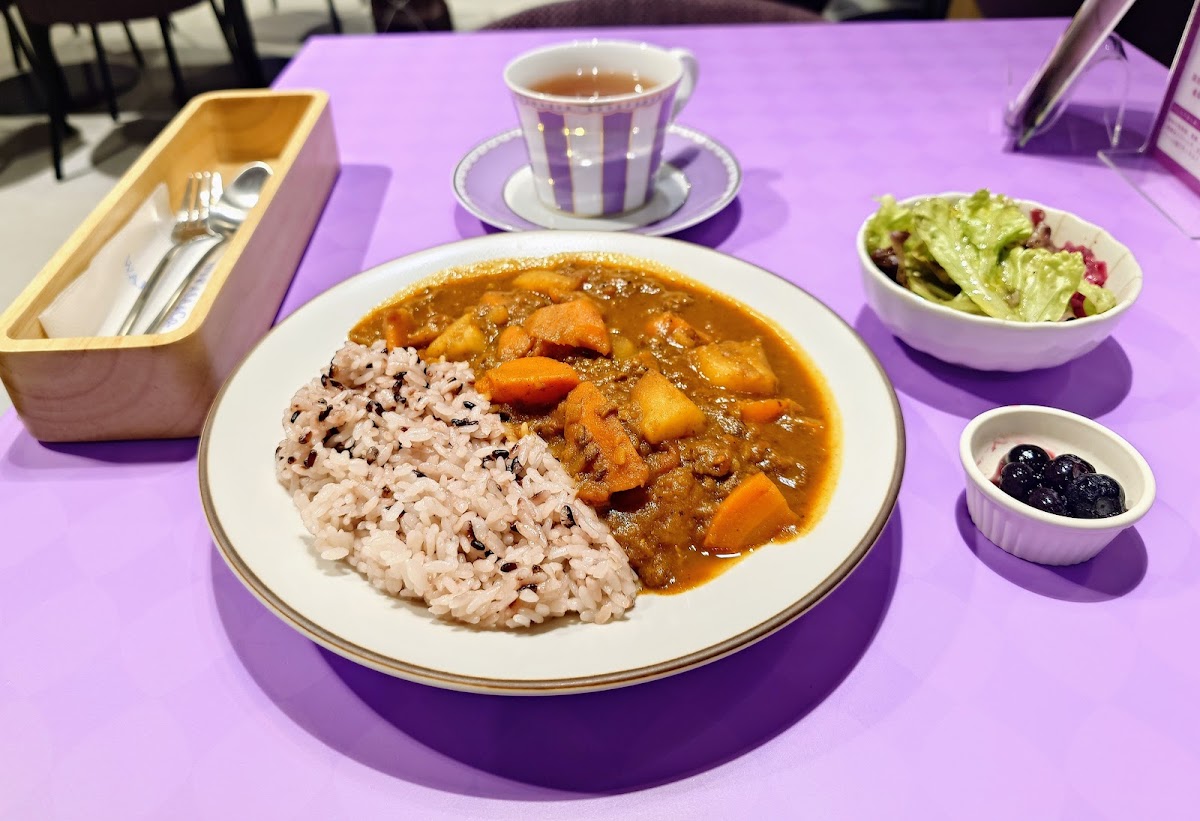 The menu at BLUEBERRY Cafe is a testament to its creative offerings, primarily focusing on delightful blueberry-infused dishes that are sure to tantalize your taste buds. Dive into their signature ごろっと野菜カレー, a magical curry that artfully combines the richness of spices and fresh vegetables without using any roux. It's simmered to perfection, ensuring a gentle yet satisfying flavor that's accessible to spice-sensitive palates. Each bite is accompanied by the satisfying crunch of black rice and hearty chunks of vegetables, promising a dish that will fill both your stomach and soul.